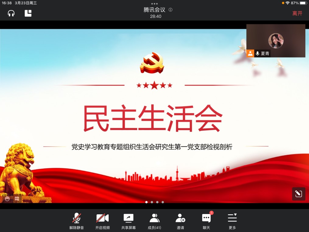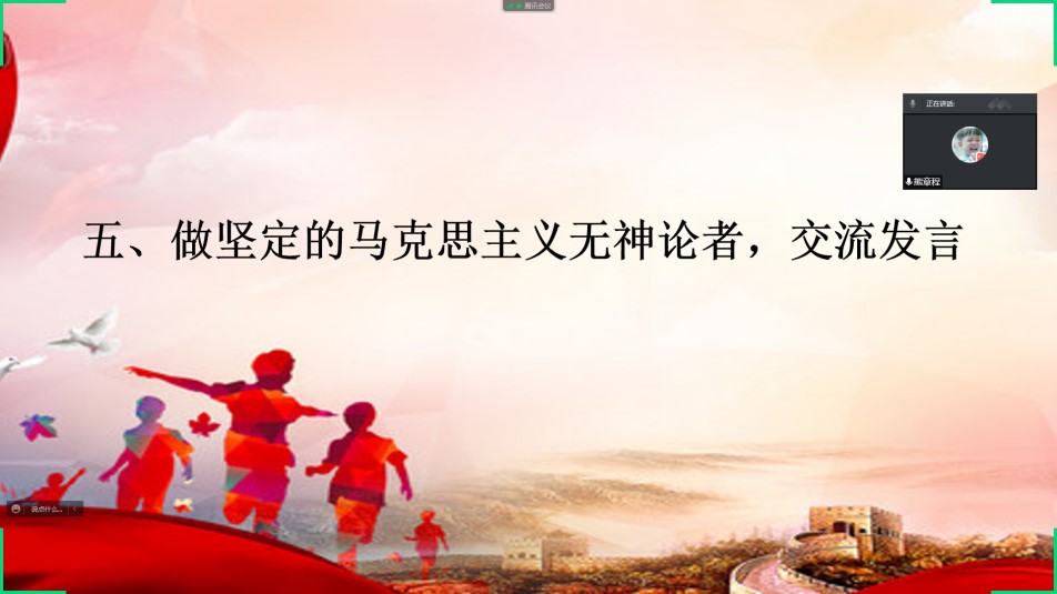 研究生第一党支部利用腾讯会议在线上召开以“做坚定的马克思主义无神论者”为主题的三月份主题党日活动暨2021年度组织生活会、民主评议会。支部书记夏青主持会议。