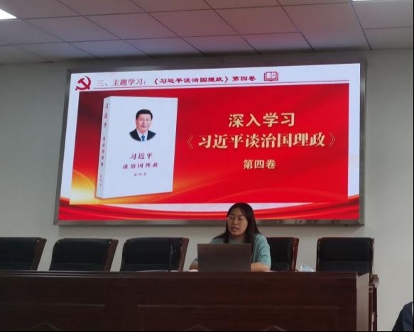 在完成重温入党誓词、交纳党费、诵读党章等规定动作后,张晶晶同志组织全体党员集中学习了《习近平谈治国理政》第四卷-《心怀“国之大者”,切实把增强“四个意识”、坚定“四个自信”、做到“两个维护”落实到行动上》的文章。随后党员同志进行了研讨活动并分享心得体会,蔡文惠同志表示,深入学习《习近平谈治国理政》第四卷,是筑牢理想信念、提高理论素养、增强政治能力的重要途径,我们一定要读原著学原文、悟原理知原义,忠诚拥护“两个确立”、坚决做到“两个维护”。陈艺思同志认为,面对百年变局和世纪疫情相互叠加、世界进入新的动荡变革期的复杂局面,我们更要坚定不移地听党话、跟党走,将个人担当与国家命运紧密联系,做立大志、明大德、担大任、成大才的时代青年。