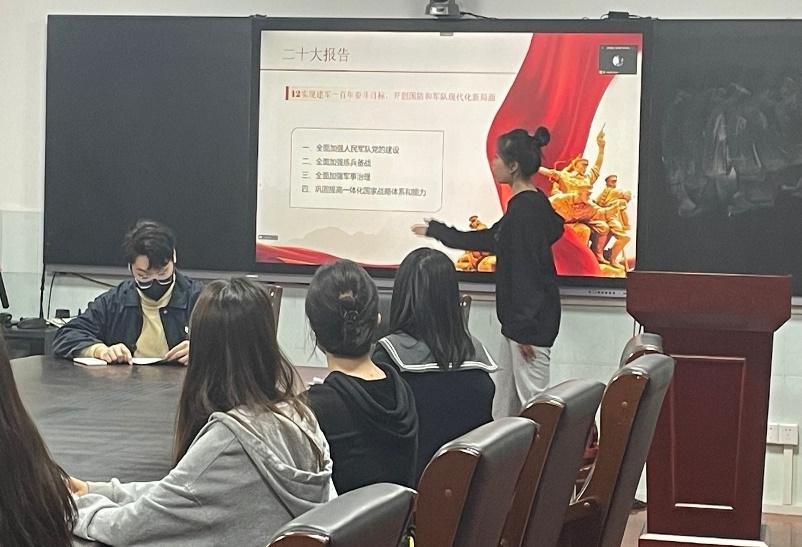 卢百卉同志表示,身为一名学科思政专业的研究生,要立足本身,增强本领,在党的二十大精神指引下,在坚定理想信念、厚植爱国情怀、加强品德修养、增长知识见识、增强综合素质等方面下功夫,教育引导学生成为有大爱大德大情怀的人,用实际行动培养更多担当民族复兴大任的时代新人。