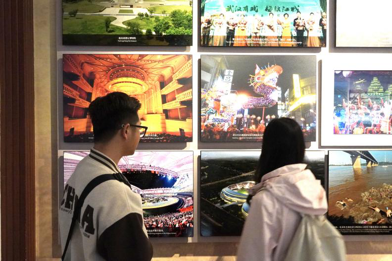 (图为党员同志们观看武汉城市的演变)