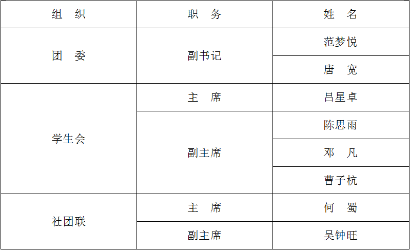 西瓜视频 第六届团学联学生常委名单