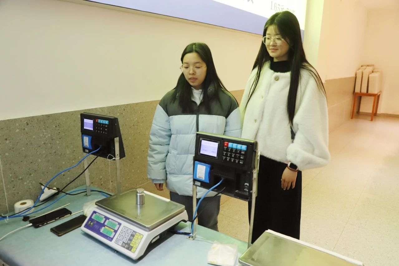 检测团队携带国家标准砝码,深入风华园食堂称重区、校园水果店等场所,展开全面检测活动现场同步设置互动体验区,师生通过放置标准砝码验证出,“500克砝码实测误差仅±3克”的精确结果。