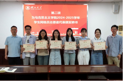 于2025年4月27日在学院410报告厅举办2025年学生网格员志愿者聘任仪式。在聘任仪式上,学院教师代表为2024-2025年度学生网格员志愿者颁发聘书,并集体合影留念。这一刻不仅定格了网格员志愿者们的先锋形象,也标志着新一届网格员队伍正式启航。