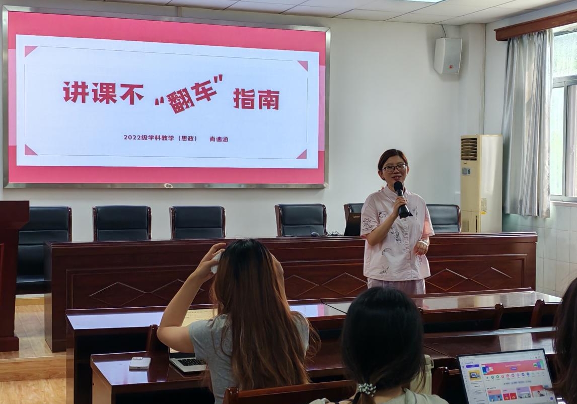 410报告厅成功举办了第二场“求实·真知”论坛暨教育研习讲座。此次讲座由政教系主任胡银银老师主持,2022级学科(思政)专业优秀硕士毕业生肖迪涵学长主讲,为即将投身教育事业的大三学子带来了一场教学经验分享会。