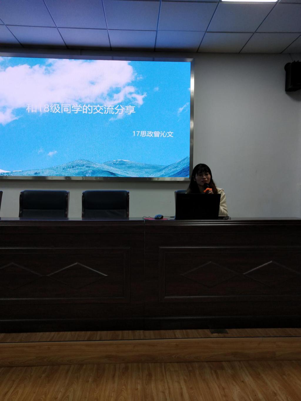 思想政治教育专业17级保研的五名同学应邀开展了经验交流会。政教专业18级全体同学与会。