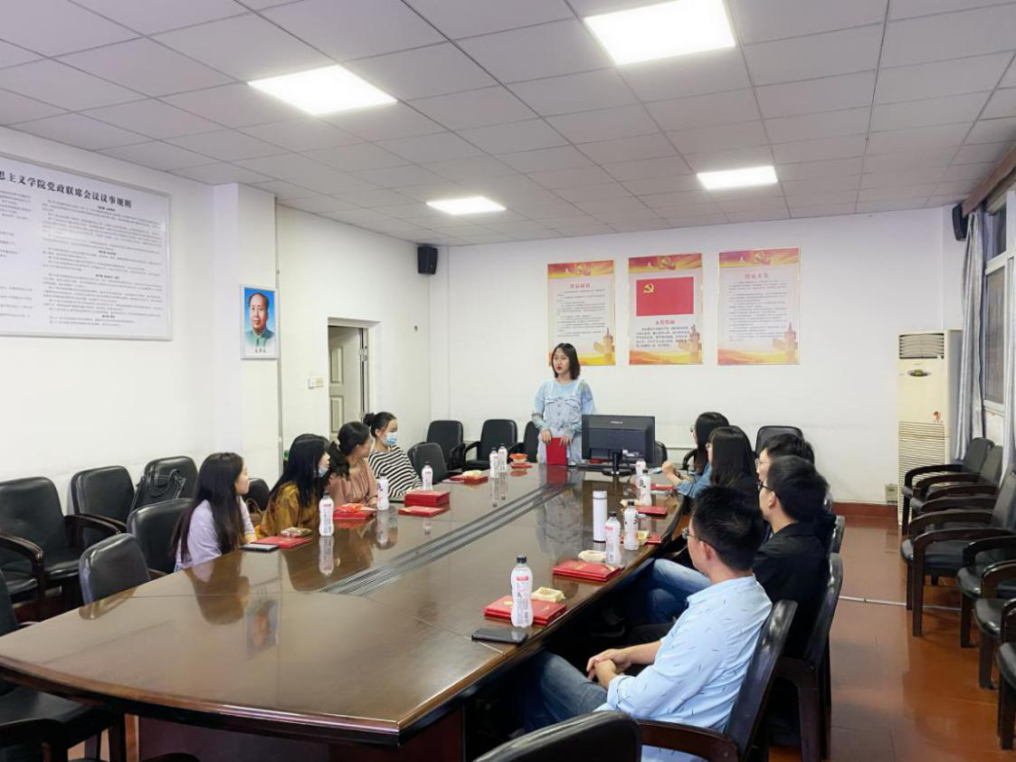 第一届“研会之星”的获得者王璐璐、熊罗美婧、史健桥和余游四位同学颁发荣誉证书,副主席谢金晶为全体成员颁发聘书。最后,主席杨君妍表示,今天的总结大会,既是一个终点,也是一个起点。一年来研会工作中,经历的种种艰辛,收获的累累硕果,每一位研会成员都是参与者和见证人,每个人都交上了一份优秀的答卷,给第八届研究生会画上了圆满的句号。希望大家带着研会工作中的成长和历练,在以后的人生道路中继续前行,也希望有责任、有担当、有能力的马院研会人接过接力棒,继续为丰富校园文化生活贡献青春力量。