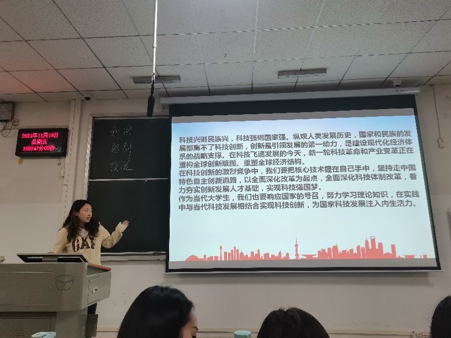 思想政治教育1901班在教三402教室举行了以“科技逐梦,强国有我”为主题的主题团日活动,本次团日活动由组织委员曾馨主持。