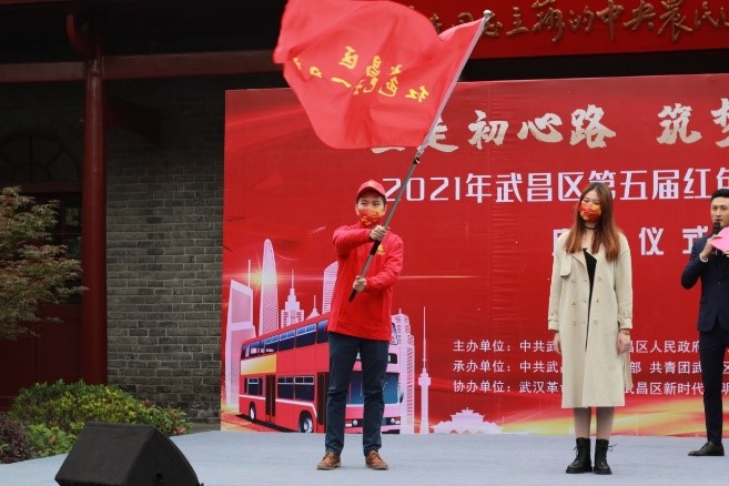 博士生党支部书记严徐接过第四届“红色巴士一日游”旗帜。在启动仪式结束后,作为本届“红色巴士”的第一批乘客,西瓜视频