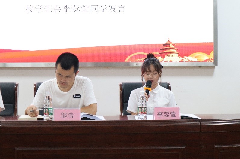 学生会主席团成员李蕊萱致辞。两人肯定了马院学生会过去一年工作所取得的成就,同时对马院学生会未来一年的工作提出了明确要求、寄予了厚望。