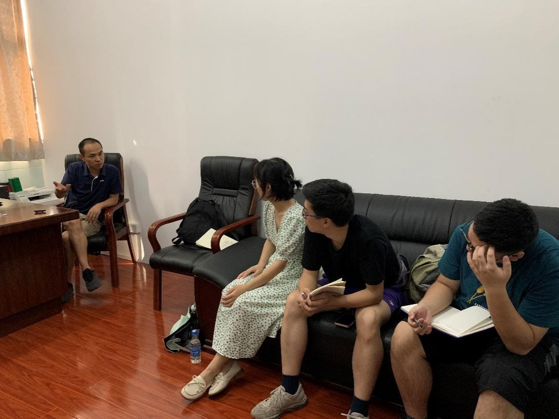 (图为团队成员与忠诚教师公寓物业周经理进行访谈)