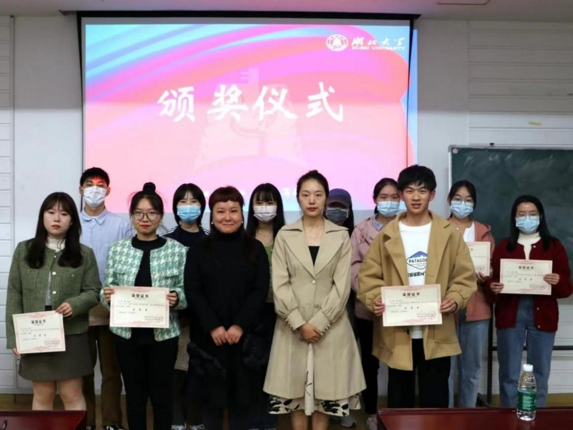 王南芳老师,新闻传播学院罗宜虹老师为获得优秀奖的选手颁奖)