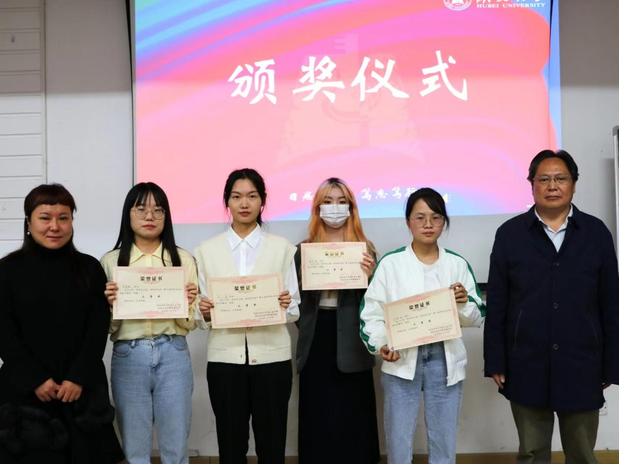 卢国琪老师,新闻传播学院罗宜虹老师为获得二等奖的选手颁奖)