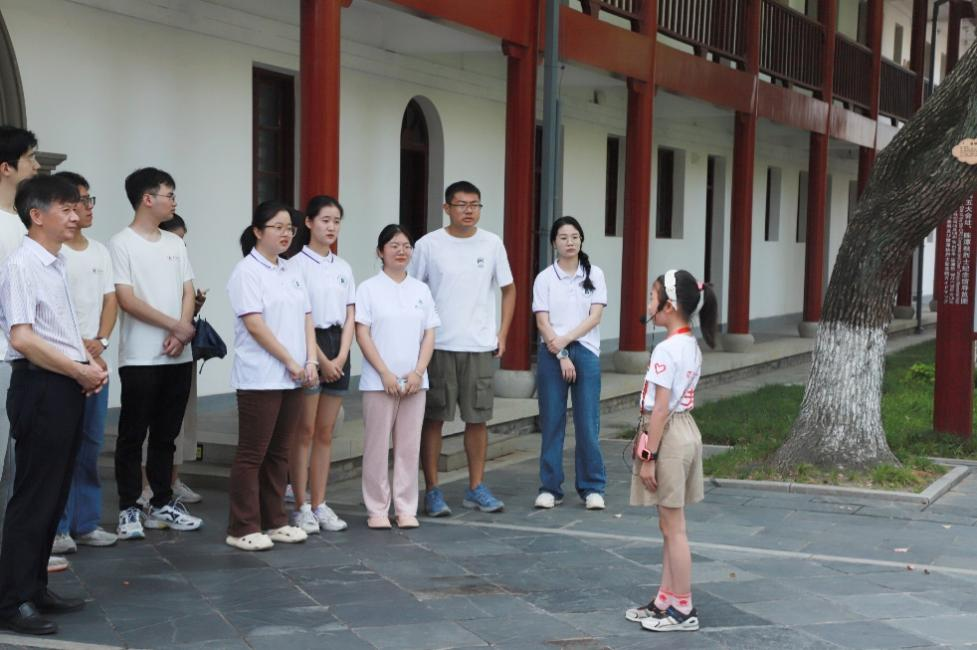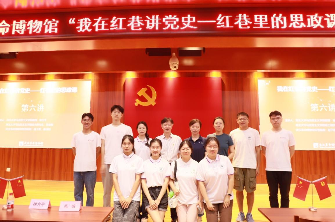 前来交流学习的师生们跟随武汉革命博物馆“红巷苗苗”志愿者的脚步走进毛泽东同志故居与中共五大会议旧址,聆听革命故事,学习革命精神。通过与工作人员交流,我们了解到“红巷苗苗研学营”是武汉市革命博物馆的品牌社教活动,该活动创新了“行走的思政课”模式,拓展“大思政”平台,推进思想政治教育向全年龄、全社会普及。
