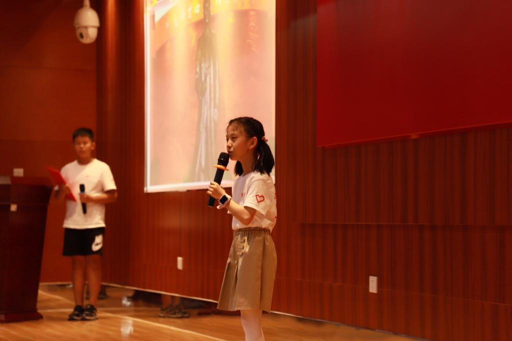 第三个环节,“红巷苗苗”志愿者康诗雨、赵子豪以“第一个提出‘中国共产党’名称的人”为主题,配合现场多媒体设备,为现场的观众带来一场故事讲演。两名小志愿者通过情景剧的形式讲述毛泽东与蔡和森的信件往来,展现了中国共产党的诞生历程,进一步加深了观众们对二人革命友谊和精神的认识。