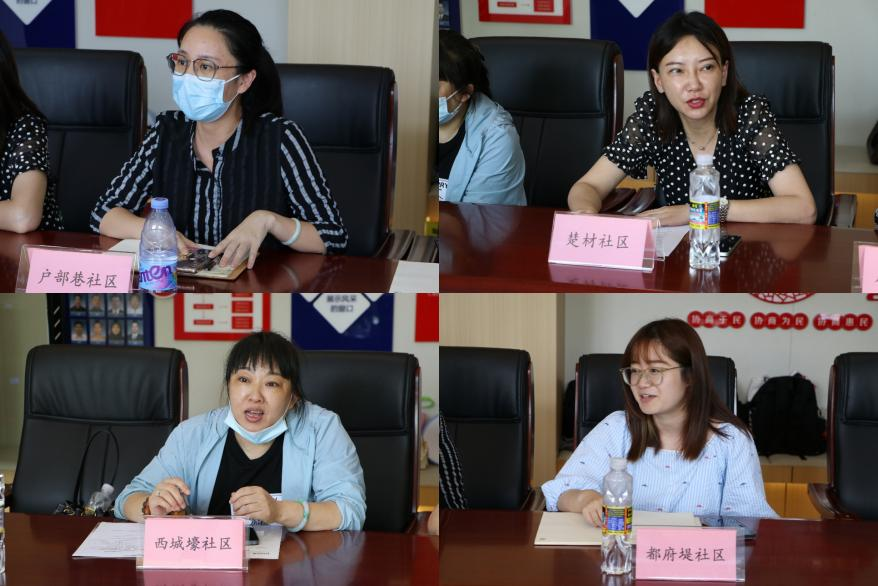 户部巷、楚才、西城壕、都府堤四个社区相关负责人先后发言。户部巷社区负责人结合基层宣讲工作开展经验,就目前优秀传统文化传播与宣讲工作提出意见建议。楚才社区负责人希望结合社区特点“量身定制”理论宣讲内容,提倡加入情景剧、研学游、音乐舞蹈等喜闻乐见的形式。西城壕社区负责人表示宣讲团可以挖掘街道名的文化意蕴、拍摄宣传微视频。都府堤社区负责人认为“青马”宣讲团能参与社区一系列活动,助力红色文化传播。