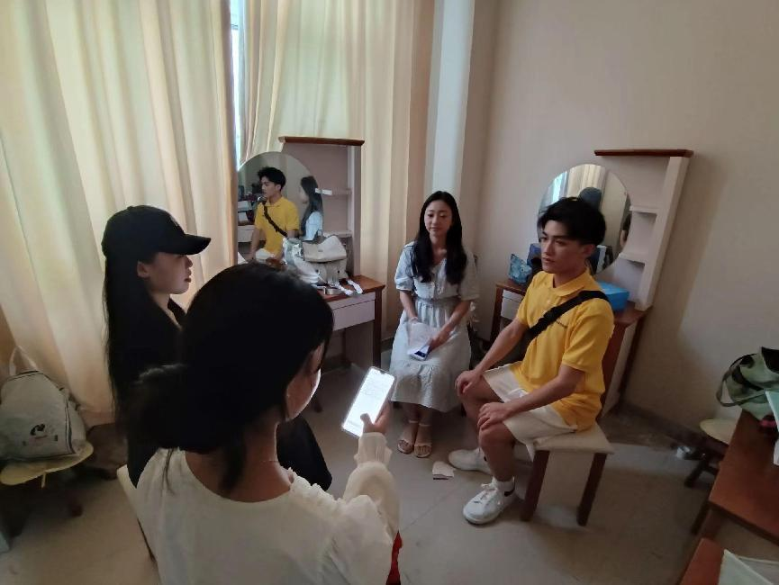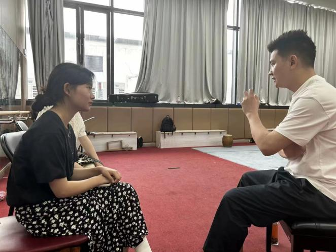 (图为团队成员与戏剧学院同学探究红色题材黄梅戏的发展现状 通讯员 夏诗琪 供图)