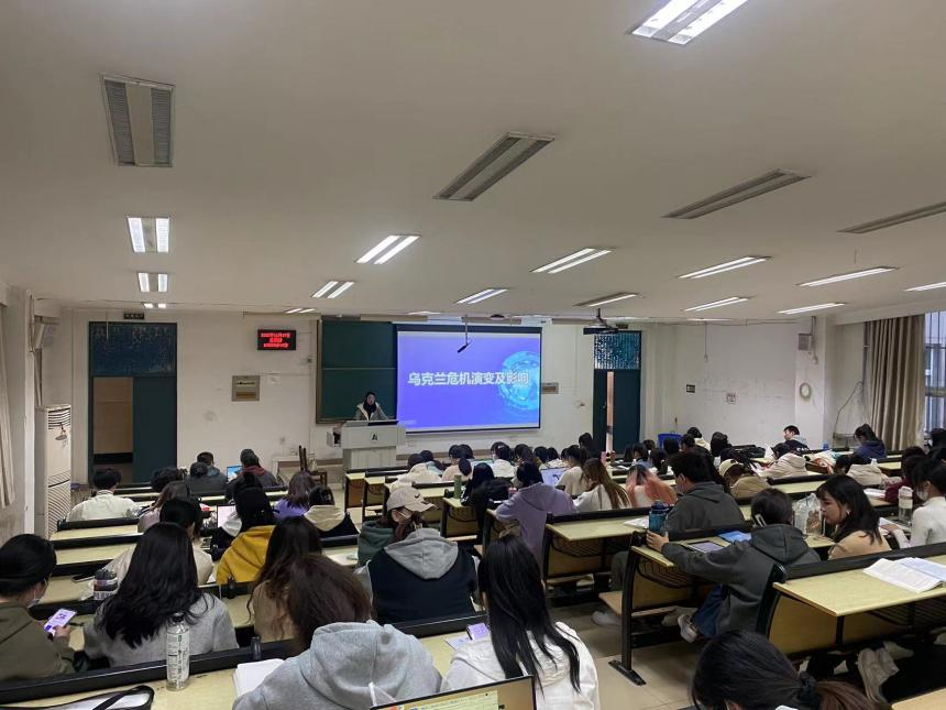 11月17日下午,王敏老师在四号教学楼105教室为学院思想政治教育专业19级、20级、21级本科生讲授题为“乌克兰危机演变及影响”的形势与政策课。