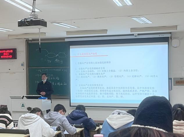 刘柏林老师从什么是从严治党、全面从严治党的时代意义、全面从严治党的卓越成效、做有纪律的新时代青年四个方面进行讲授。他指出,全面从严治党的核心是加强党的领导,积极有效进行党的建设,管在关键处、治在病根上。实现新时代的伟大梦想,必须进行伟大斗争,建设伟大工程,推进伟大事业,实现伟大梦想,使党成为推进中国特色社会主义事业建设与发展的坚强领导核心,从根本上保证党能够承担起中华民族伟大复兴的历史使命。最后,对于全面从严治党取得的的卓越成效,刘柏林老师从纪委监督、党风政风、反腐败斗争、制服治党和依规治党和党的思想建设等方面的成效进行了详细讲解。