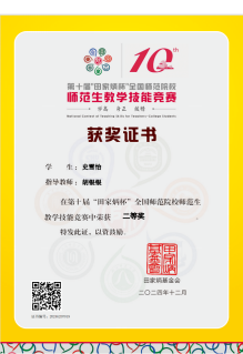 2024年11月29日至12月1日,第十届“田家炳杯”全国师范院校师范生教学技能竞赛决赛在浙江师范大学举行。在学院相关领导殷切关怀和胡银银老师精心指导下,西瓜视频