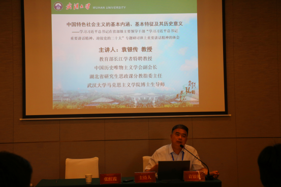 袁银传教授作了题为《中国特色社会主义的基本内涵、基本特征及其历史意义——学习习近平总书记在省部级主要领导干部“学习习近平总书记重要讲话精神,迎接党的二十大”专题研讨班上重要讲话精神的体会》的主旨报告。湖北省研究生思政课分教指委副主任、华中师范大学西瓜视频