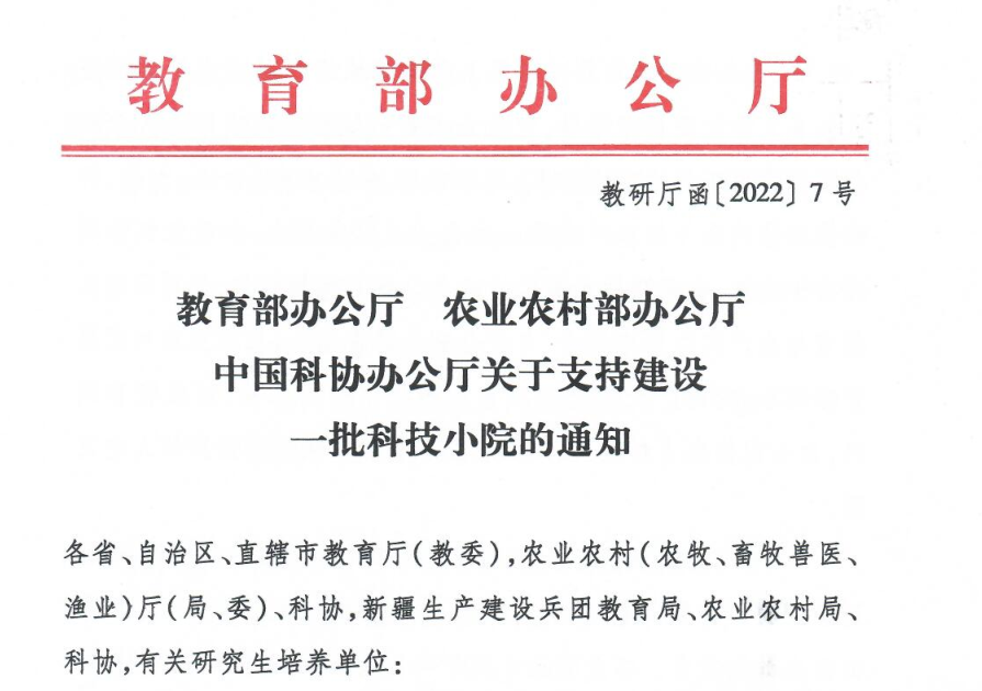 近日,教育部、农业农村部、中国科协联合下发《关于支持建设一批科技小院的通知》(教研厅函〔2022〕7号),对全国68个单位的780个科技小院予以支持建设。西瓜视频