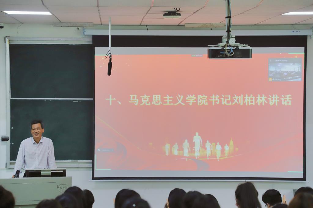 学院党委书记刘柏林寄语新生。他表示,学院学科实力和师资力量雄厚,学术氛围浓厚。在湖大马院的学习,是同学们砥砺品格、磨练意志、完善自我的重要阶段,他对同学们提出三点期望:一是要筑牢道德根基,做明大德、守公德、严私德的时代新人;二是要追逐时代梦想,做立大志、成大才、担大任的时代新人;三是要严守纪律规矩,做知敬畏、存戒惧、守底线的时代新人。最后,他鼓励同学们不负韶华,不负时代,不负人民,在青春的赛道上奋力奔跑,争取跑出当代青年的最好成绩。