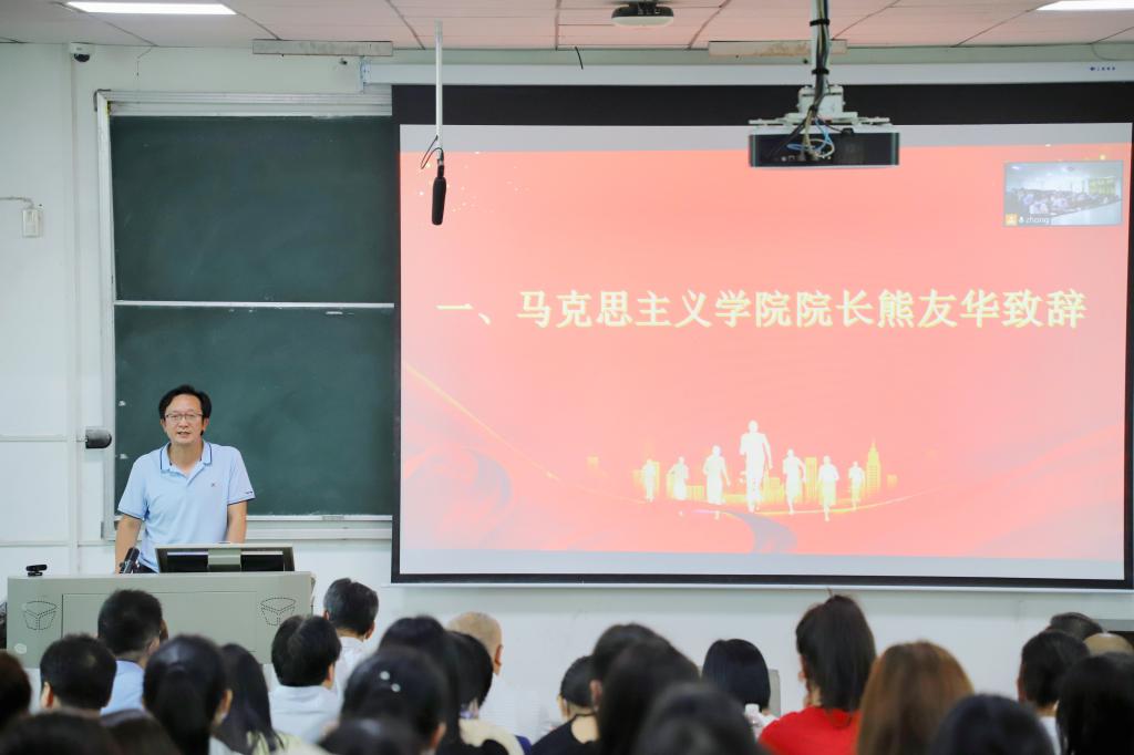 院长熊友华致辞,他对22级全体新生的到来表示热烈欢迎,并向同学们详介绍了学院的发展历程以及研究生培养所取得的优秀成绩。最后希望大家能够在湖大马院继续笃定初心、矢志前行,以梦为马、如己所愿。