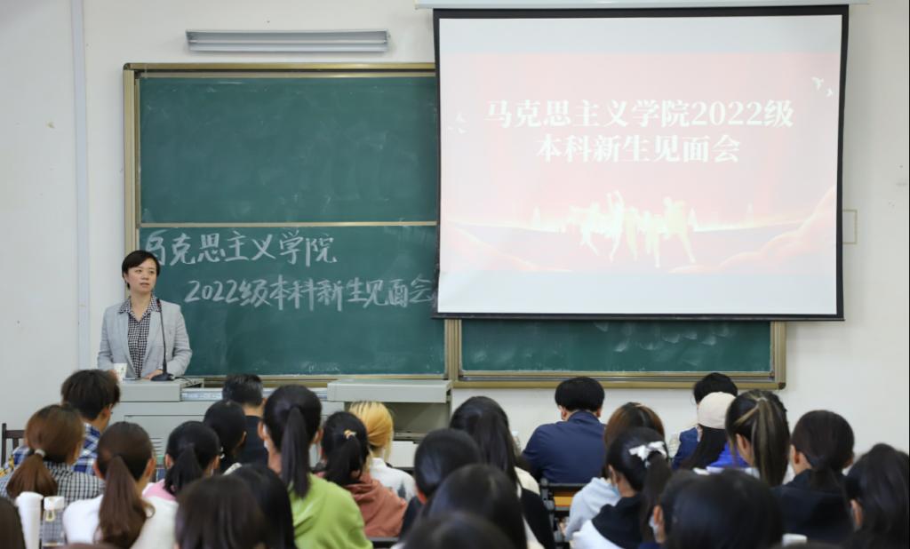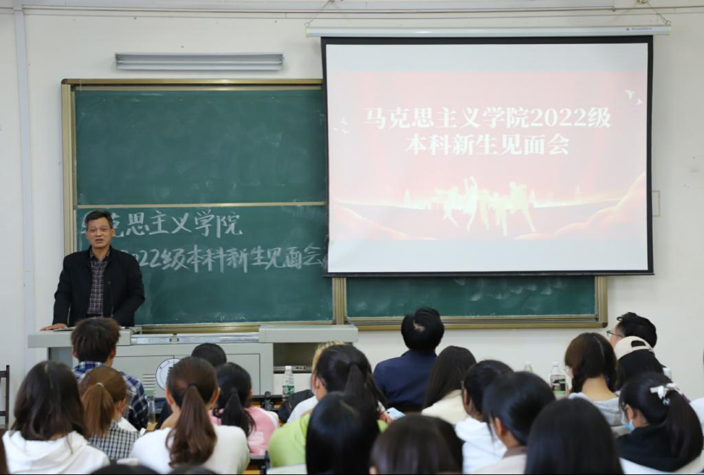 2022级本科生新生师生见面会在阳逻校区B403教室举行。学院党委书记刘柏林,院长熊友华,党委副书记晏妮,副院长易振龙、徐信华,新生班主任王昊、邹浩,通识教育学院辅导员史健桥以及2022级本科生新生参加见面会。会议由院党委副书记晏妮主持。