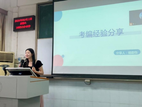 5月11日下午 ,杨韵怡同学深入分享了自己的考编经验,并特别为同学们整理了全国不同省市有关教师编考试的不同要求,帮助同学们尽快明晰未来就业规划。她提醒大家要结合自身实力与未来求职意向,尽快了解相关考试要求,做出充分准备。