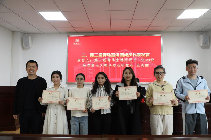 会议伊始,第三届青马宣讲团团长、2023级马克思主义理论专业研究生王贞懿围绕“暖心、用心、信心”三心,对过去一年青马宣讲团的工作进行了回顾和总结,讲述了自己在青马宣讲团的收获与感悟,同时表达了对指导老师和共同努力的工作伙伴的感激之情,并对青马宣讲团的未来寄予希望。