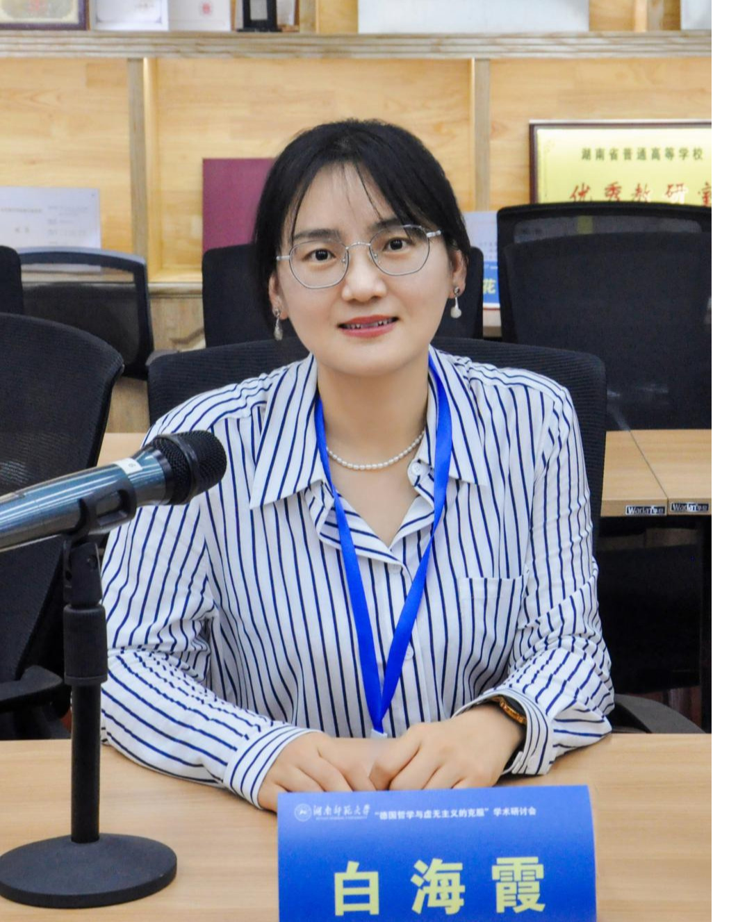 白海霞,女,中共党员,1984年9月出生,哲学博士。2004年至2008年就读于南昌大学人文学院哲学专业,获得哲学学士学位;2008年至2016年就读于武汉大学哲学学院外国哲学专业,先后获得哲学硕士学位和哲学博士学位。主要研究方向为德国哲学、伦理学、国外马克思主义。现主要讲授本科生《马克思主义哲学基本原理》、《思想道德修养与法律基础》等课程。参与过多项国家级及省部级课题,在《道德与文明》、《哲学评论》、《理论月刊》等期刊上发表多篇文章。